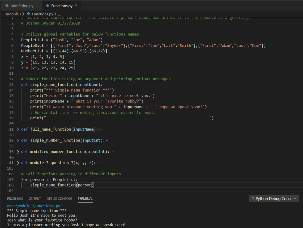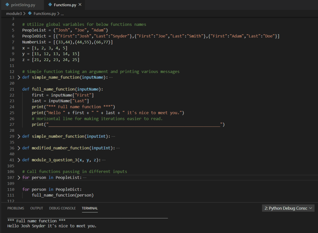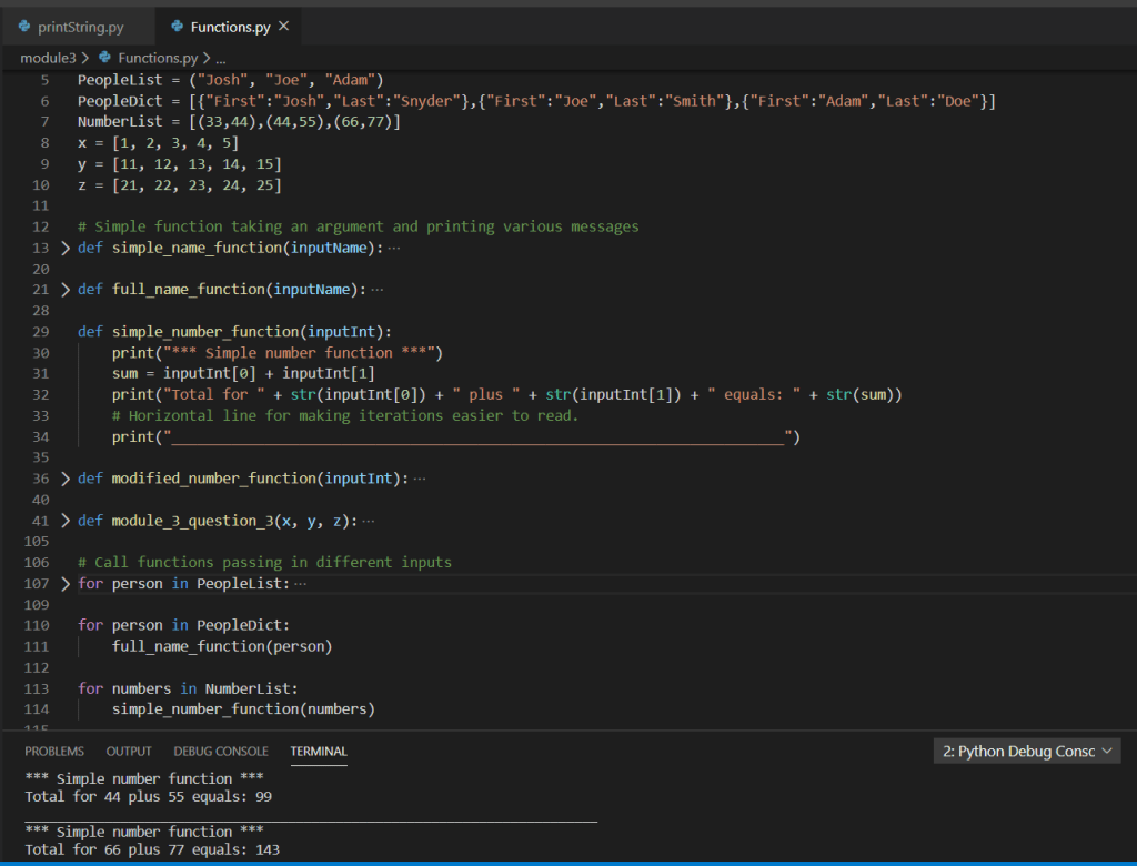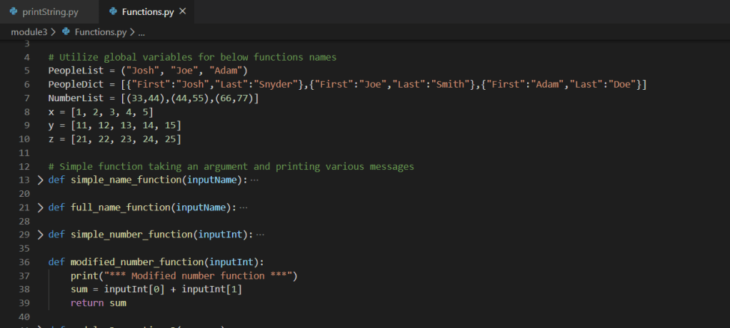 As we continue walking through the program we can see multiple functions accepting parameters and returning tuples utilized within the mainline of the main function: