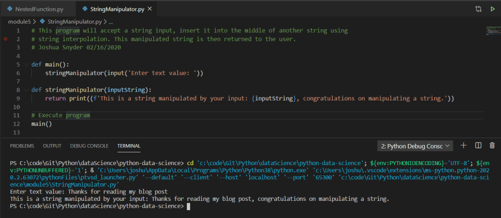 For the full code example and others like it, please feel free to check it out here: https://github.com/joshsnyder/python-data-science/blob/develop/final/FinalProject.py